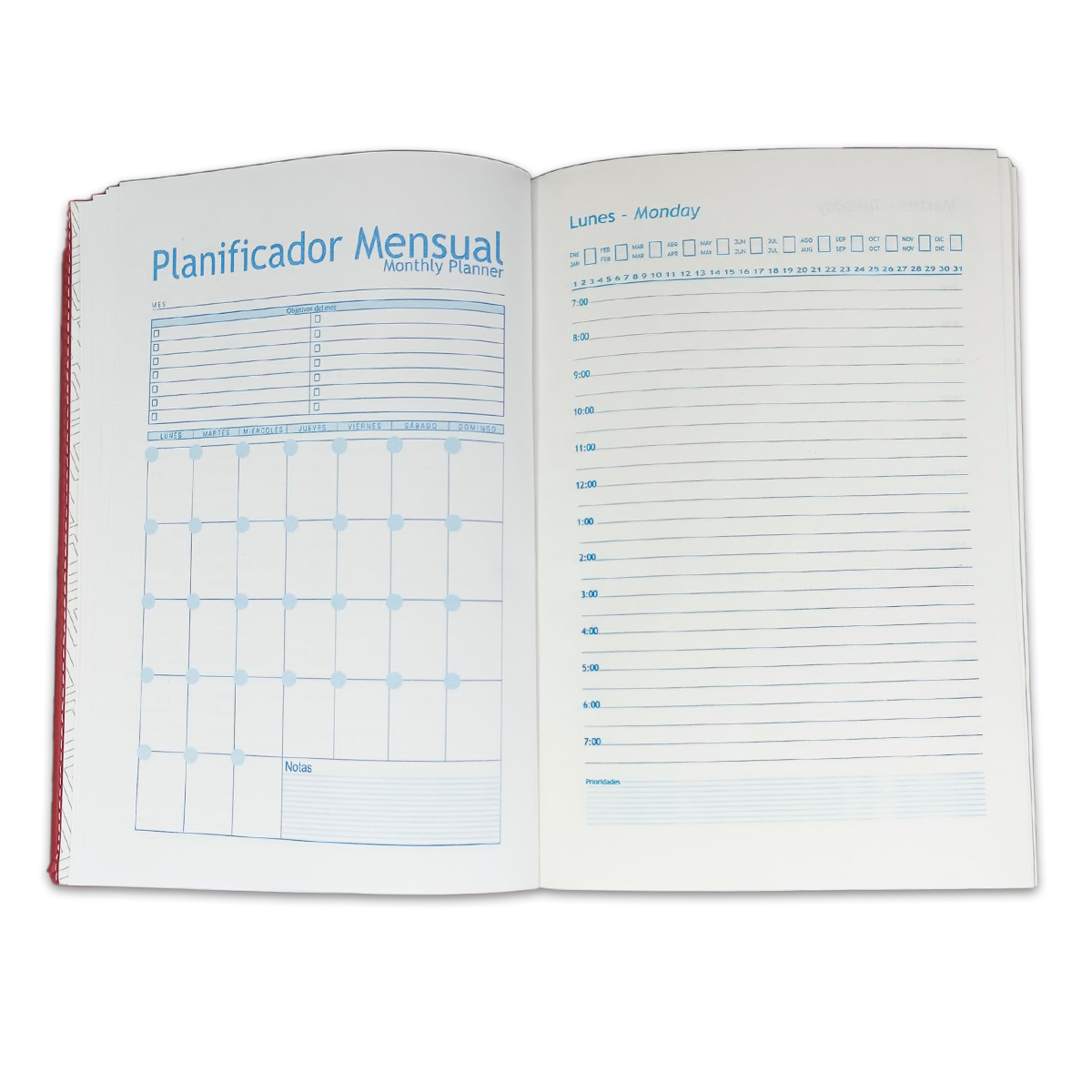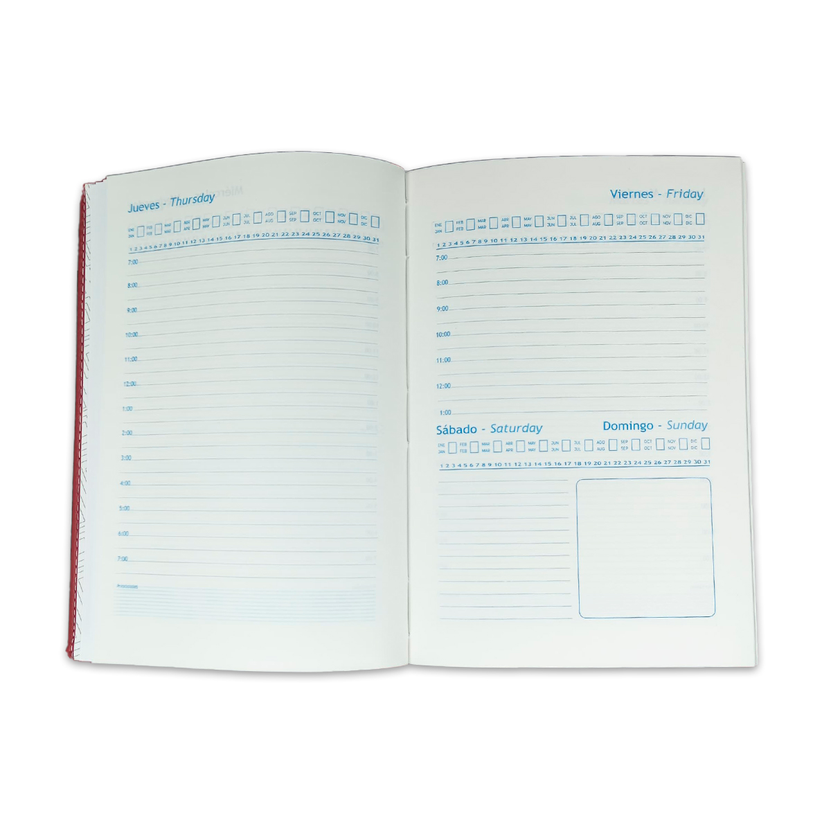 Agenda Diaria Permanente, perfecta para tus anotaciones diarias, cuenta con tapa de semicuero cosida. Con medida de 14*21 cm, 256 páginas en Bond que te facilitan la organización de tu tiempo.En idioma Español e ingles, con cinta separadora, planeadores mensuales al inicio, calendario perpetuo, tabla de conversión, tallas y medidas, calendario 2023-2028